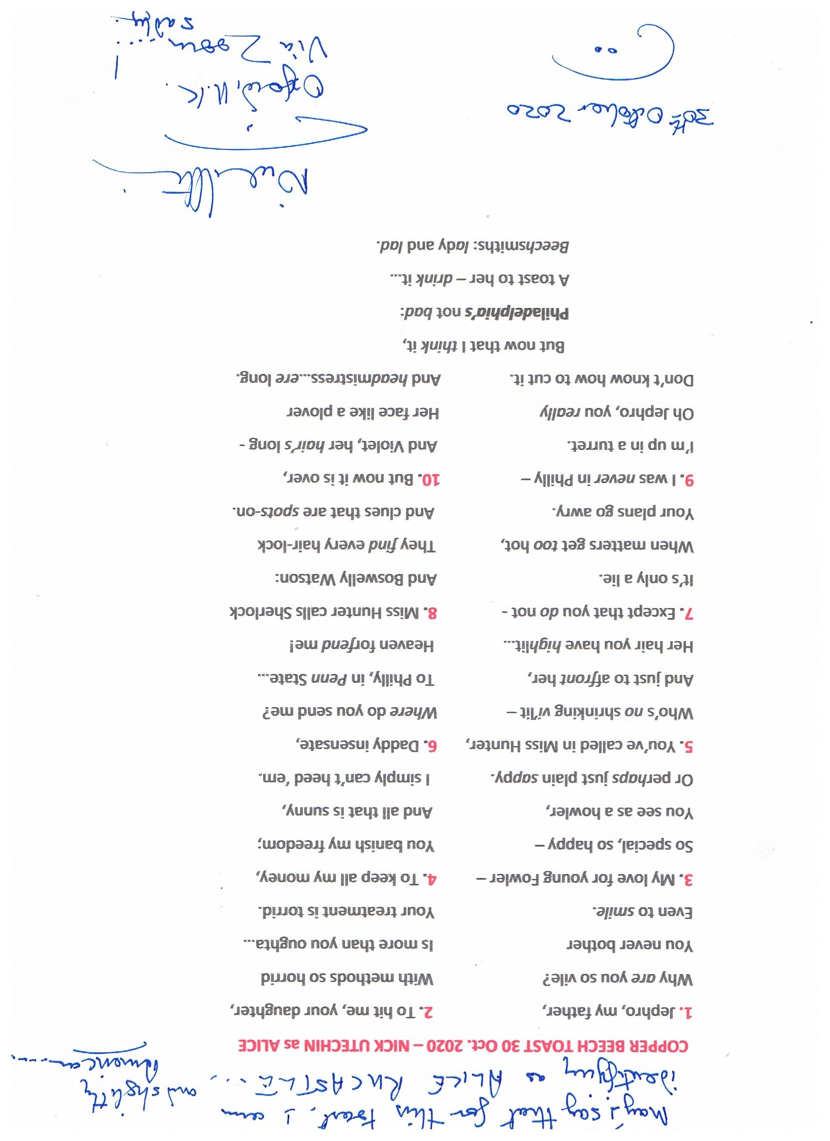 | Nick Utechin | Philadelphia | Sons of the Copper Beeches | 2020-10-30 |